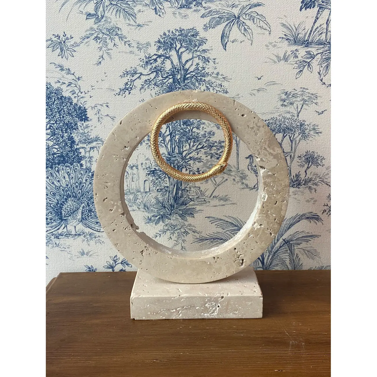 مجسمه سنگی با مار طلایی بزرگ