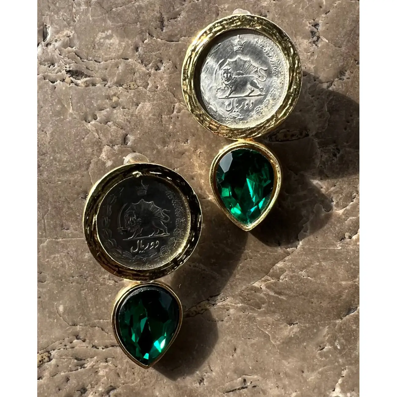 Sikke Küpe Yeşil Damla Taşlı