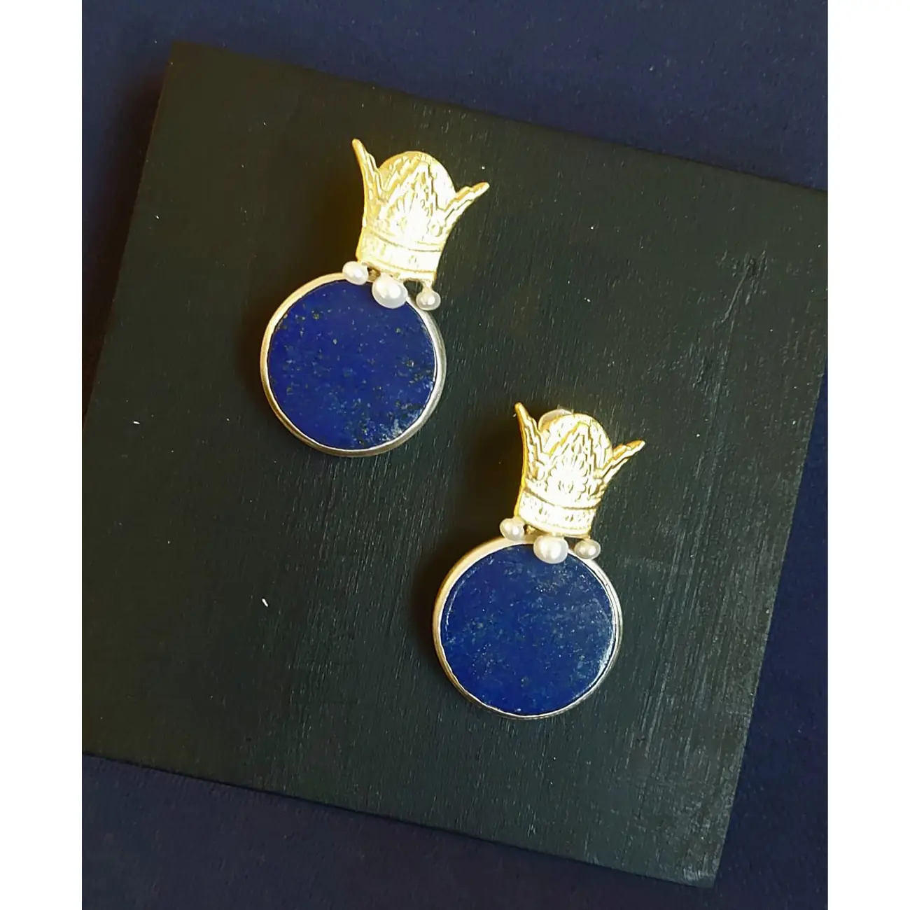 Altın Kaplama Gümüş Taç Küpe, Afgan Lapis Lazuli ve İnci ile