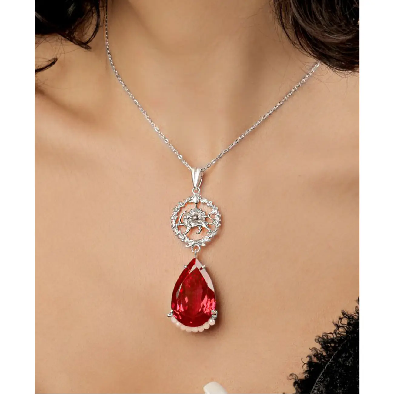 Sentetik Yakut, Gül Suyu Taşı ve Gümüş Aslan ve Güneş Kolye
