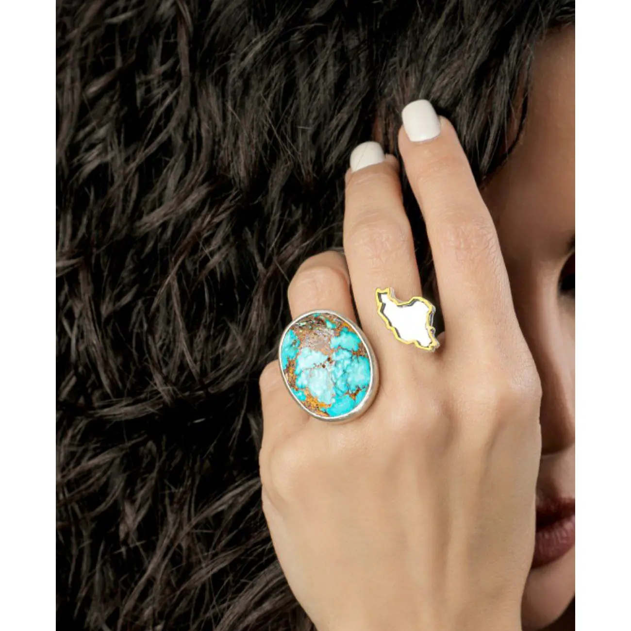 Firuze Taşlı ve İran Haritalı Yüzük